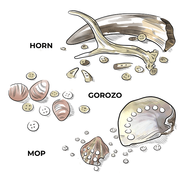 Bullhorn and mother of pearl buttons