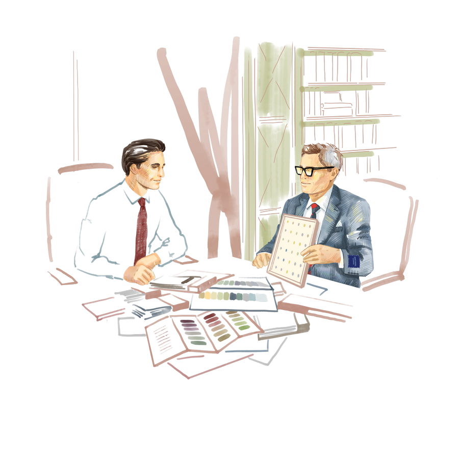 You have two distinct ways to meet us. At our Hotel or your Office or Residence. During the trunk shows you will see much more vast choice of fabrics and accessories by visiting our Hotel and will be greeted by your choice of drinks and small bites and for a friendly chat without any pressure to rush to next meeting.